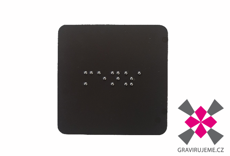 Značení je vyrobeno z tmavo šedého plastu, Braillovo písmo tvoří kvalitní nerezové kuličky.