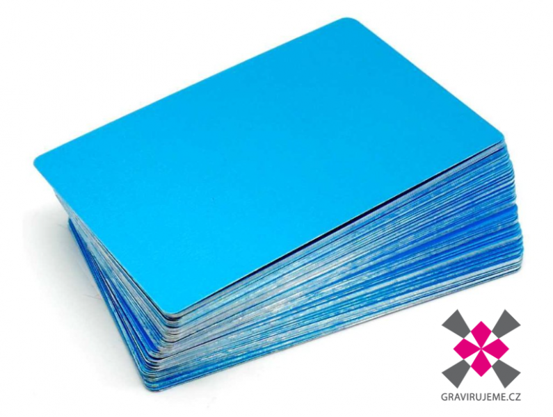 vizitka z eloxovaného hliníku modrá 0,22mm 100ks - www.gravirujeme.cz