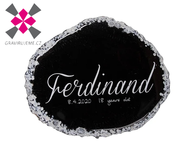 Každý disk je jedinečný svou barvou, tvarem a vzorem, což z něj činí ideální volbu pro jedinečné osobní památky a dárky. Každý kus achátu je vysoce leštěný a plochý, připravený k laserovému gravírování se jménem, ​​logem nebo monogramem.