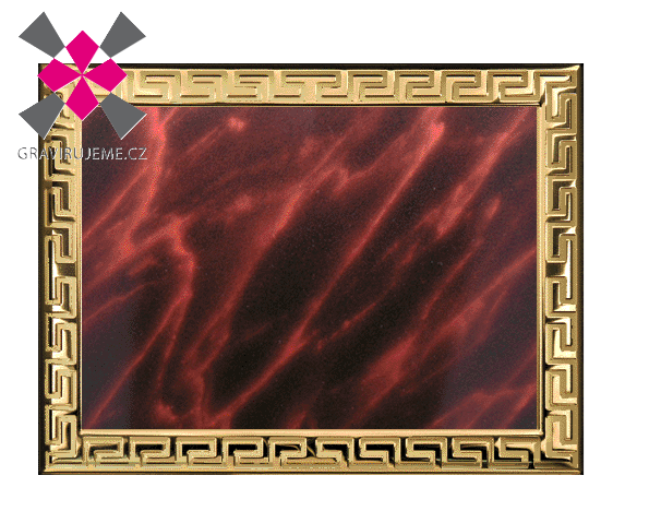 Hliníková dekorativní cedule v provedení kaštanový mramor, zlatá, s raženým zlatým okrajem.