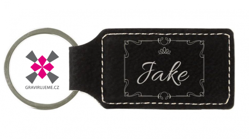 Obdélníková klíčenka PU kůže dvoubarevná - ilustrativní foto finálního produktu již po vygravírování
