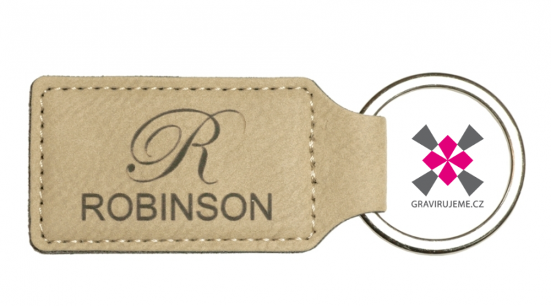 Obdélníková klíčenka PU kůže dvoubarevná - ilustrativní foto finálního produktu již po vygravírování
