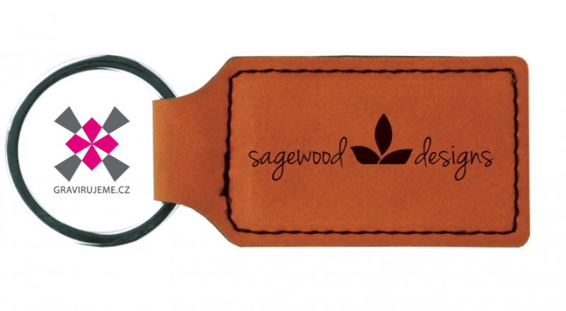 Obdélníková klíčenka PU kůže dvoubarevná - ilustrativní foto finálního produktu již po vygravírování