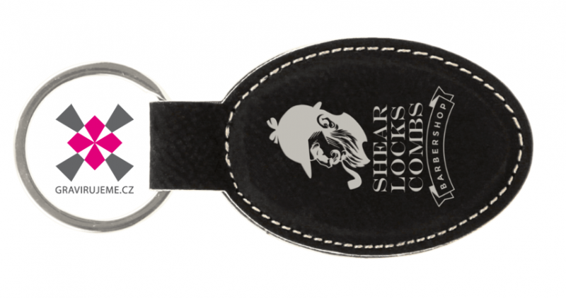 Oválná klíčenka PU kůže dvoubarevná - ilustrativní foto finálního produktu již po vygravírování