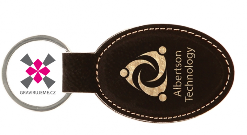 Oválná klíčenka PU kůže dvoubarevná - ilustrativní foto finálního produktu již po vygravírování