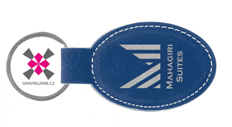 Oválná klíčenka PU kůže dvoubarevná - ilustrativní foto finálního produktu již po vygravírování
