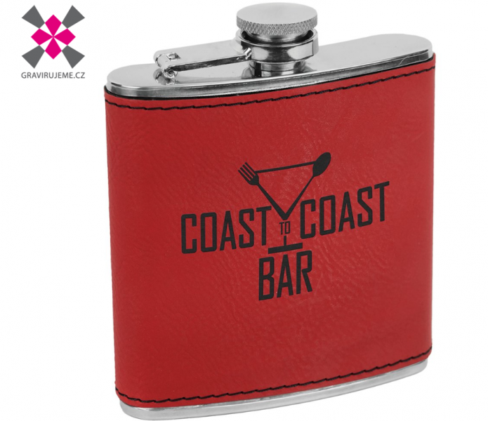 kapesní lahev nerez, PU kůže červená, 177ml 5ks 4 - www.gravirujeme.cz