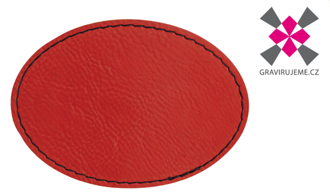 nášivka z PU kůže s termolepidlem, 89x56mm, červená, 25ks 49 - pohled 1 - www.gravirujeme.cz nášivka z PU kůže s termolepidlem, 89x56mm, červená, 25ks 49 - pohled 2 - www.gravirujeme.cz