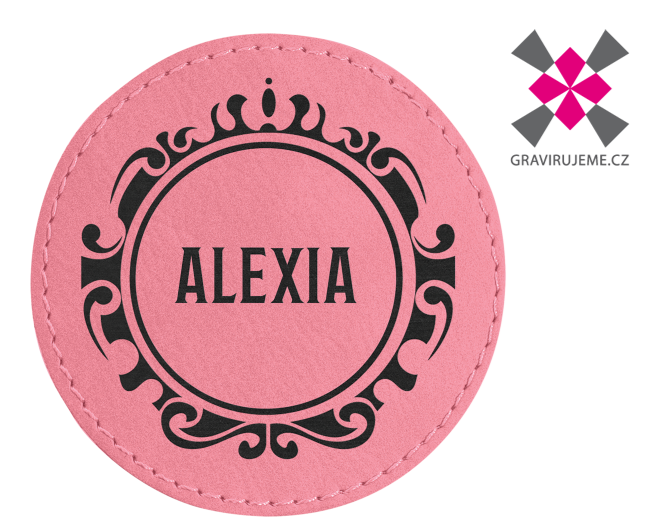 nášivka z PU kůže s termolepidlem, průměr 75mm, růžová 25ks 20 - www.gravirujeme.cz